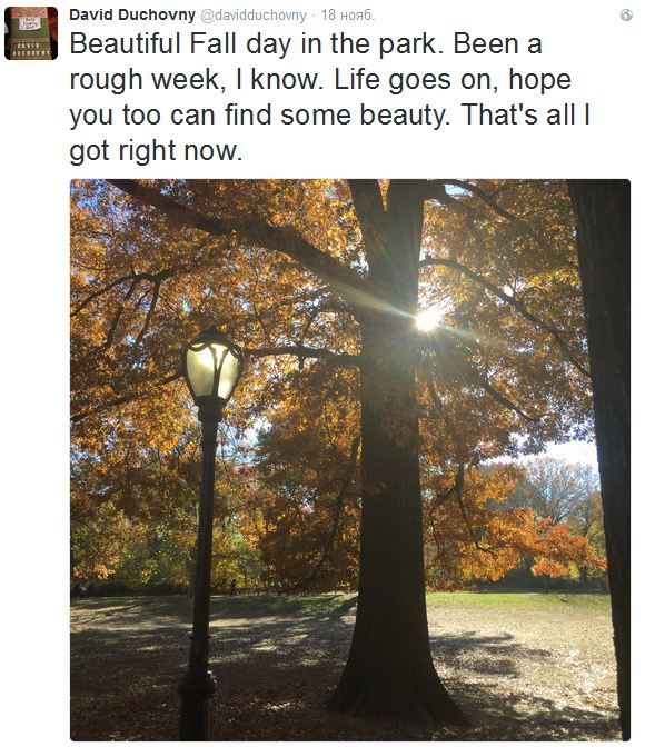 В конце ноября Джиллиан Андерсон принимала участие в съемках фильма под название UFO (ЧТО?!) в Цинциннатти, а недавно засветилась в Нью-Йорке на 20-летии UN Trust Fund to End Violence against Women. Дэвид тоже в Нью-Йорке, видимо, работает над вторым музыкальным альбомом.