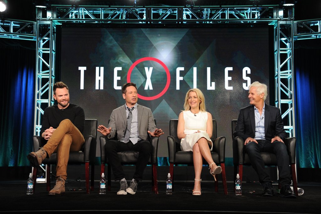 Сначала небольшая панель с участием Дэвида Духовны, Джиллиан Андерсон, Криса Картера и Джоэла МакХэйла.